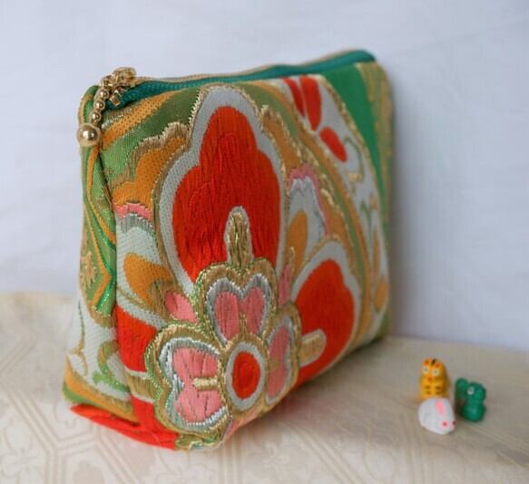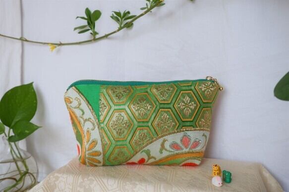 リユースの帯をアップサイクルして作っております。1点1点国内で職人の手により丁寧に縫製されております。細心の注意を払ってはおりますが、傷、糸の飛び出し、汚れなどがある可能性もございます。アップサイクル品故の特殊性でございますのであらかじめご了承の上お買い上げください。着るための着物を形を変えて、元の持ち主から新しい持主へ、新しい用途で使っていただけるようにお届けできることを喜びとしております。何卒ご理解の上、アップサイクル品ならではの商品をお楽しみください。ノークレームノーリターンでお願いいたします。