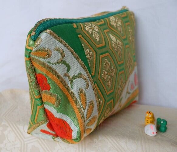 帯をアップサイクルしてつくっておりますので、シルク素材で大変美しい光沢を放っています。