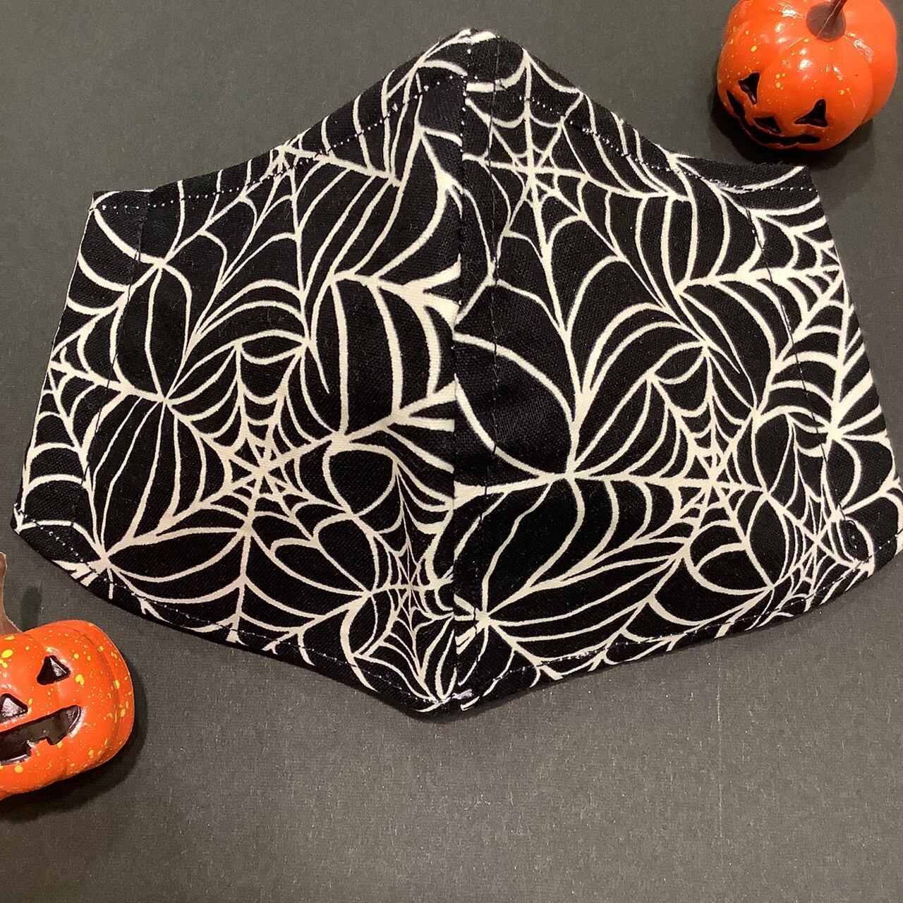 送料無料 ハロウィン マスク 黒 クモの巣 子供 ハロウィンコーデ 仮装におすすめ 表裏ともコットン 呼吸が楽 ずれにくい 天然素材 肌に優しい ノーズワイヤー入