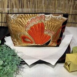 リユースの帯をアップサイクルして作っております。1点1点国内で職人の手により丁寧に縫製されております。細心の注意を払ってはおりますが、傷、糸の飛び出し、汚れなどがある可能性もございます。アップサイクル品故の特殊性でございますのであらかじめご了承の上お買い上げください。着るための着物を形を変えて、元の持ち主から新しい持主へ、新しい用途で使っていただけるようにお届けできることを喜びとしております。何卒ご理解の上、アップサイクル品ならではの商品をお楽しみください。ノークレームノーリターンでお願いいたします。
