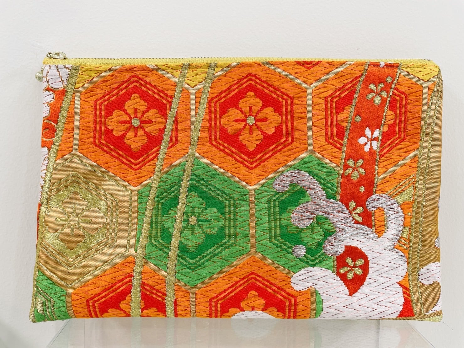 リユースの帯をアップサイクルして作っております。1点1点国内で職人の手により丁寧に縫製されております。細心の注意を払ってはおりますが、傷、糸の飛び出し、汚れなどがある可能性もございます。アップサイクル品故の特殊性でございますのであらかじめご了承の上お買い上げください。着るための着物を形を変えて、元の持ち主から新しい持主へ、新しい用途で使っていただけるようにお届けできることを喜びとしております。何卒ご理解の上、アップサイクル品ならではの商品をお楽しみください。ノークレームノーリターンでお願いいたします。