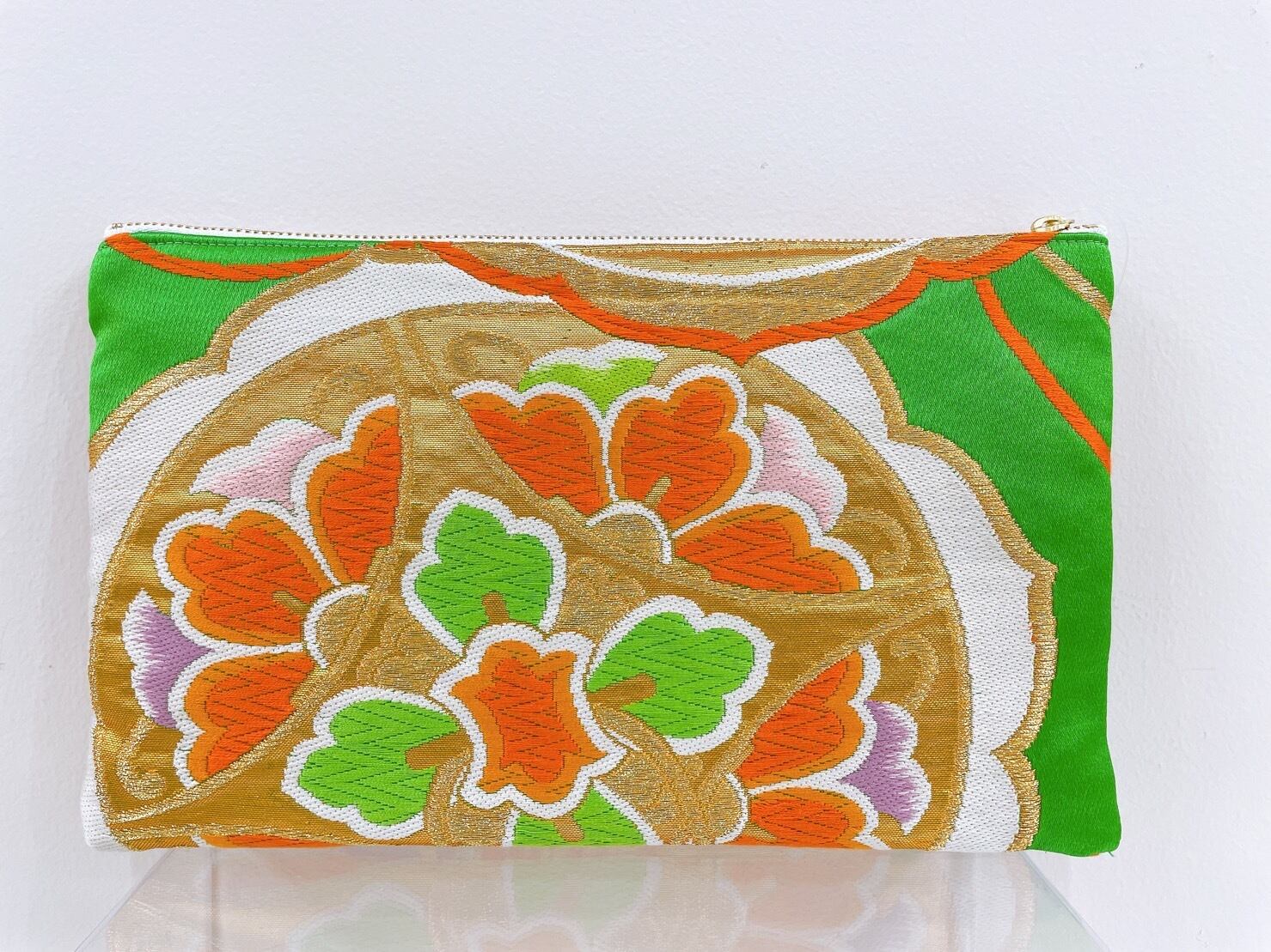 リユースの帯をアップサイクルして作っております。1点1点国内で職人の手により丁寧に縫製されております。細心の注意を払ってはおりますが、傷、糸の飛び出し、汚れなどがある可能性もございます。アップサイクル品故の特殊性でございますのであらかじめご了承の上お買い上げください。着るための着物を形を変えて、元の持ち主から新しい持主へ、新しい用途で使っていただけるようにお届けできることを喜びとしております。何卒ご理解の上、アップサイクル品ならではの商品をお楽しみください。ノークレームノーリターンでお願いいたします。