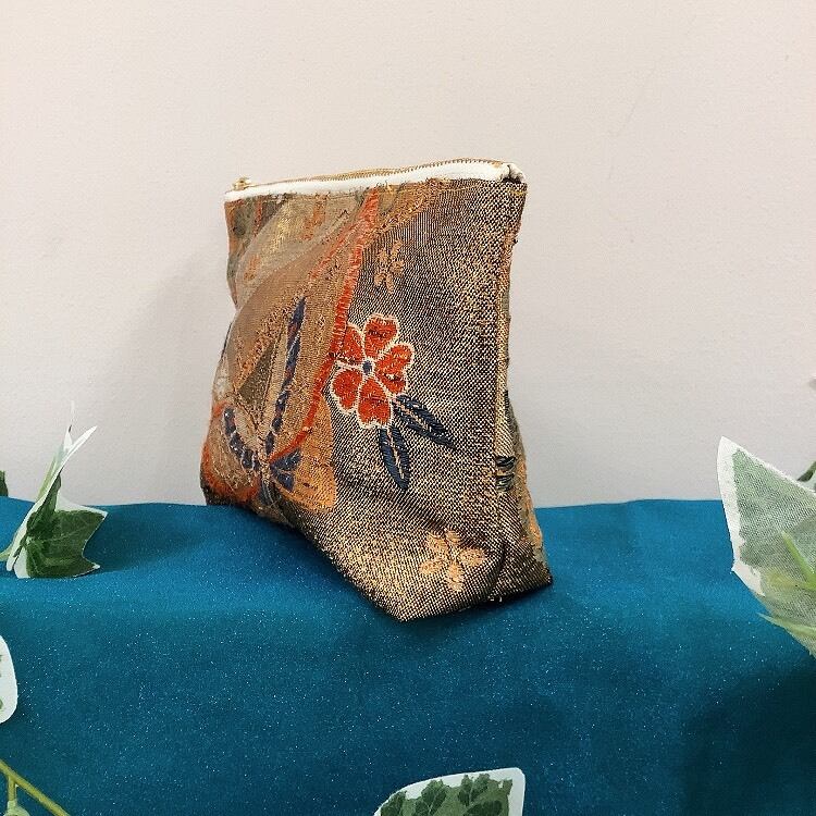 帯をアップサイクルしてつくっておりますので、シルク素材で大変美しい光沢を放っています。