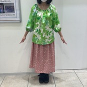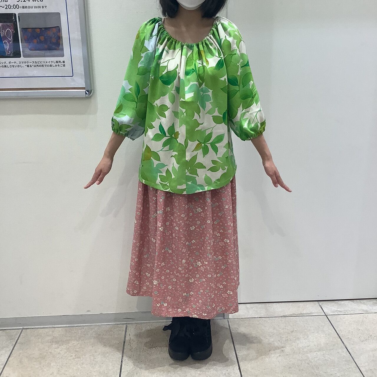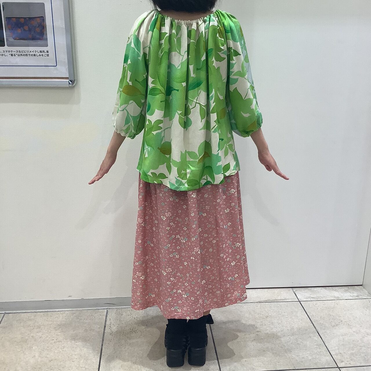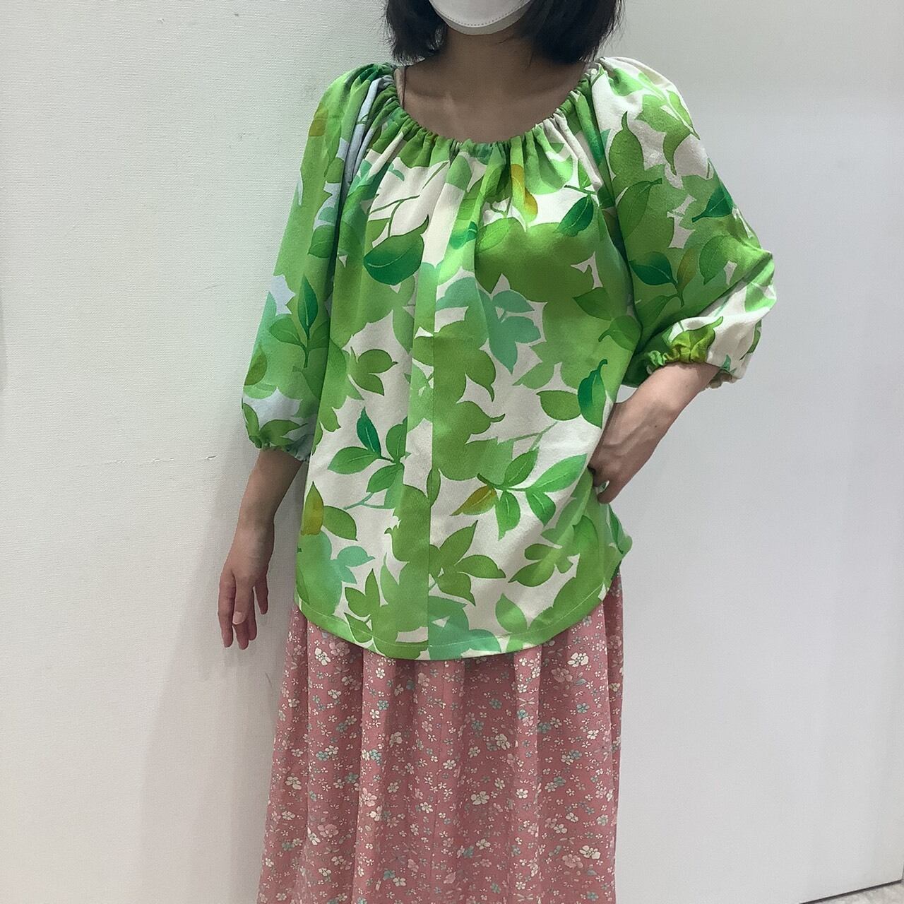 瑞々しい若葉の柄の着物から作られており、着るだけで気分もすがすがしくなる逸品です。本物の着物をアップサイクルしてつくっておりますので、シルク素材で大変美しい光沢を放っています。サイズはフリーサイズのチュニックタイプ。すべすべの手触りがとても気持ちいいです。